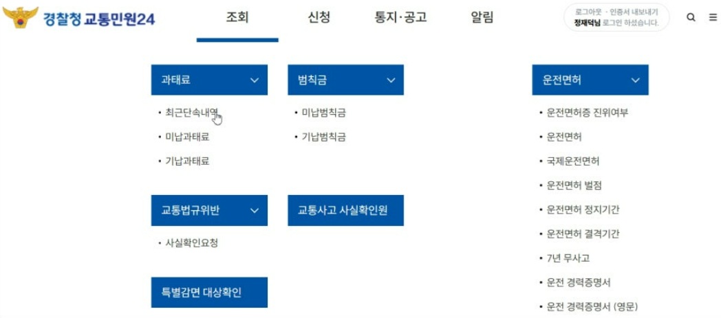 교통 법칙금 조회하기
