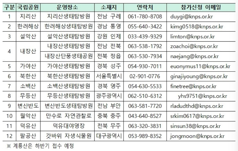 자세한 내용은 국립공원공단 누리집 공지사항을 확인하세요~!