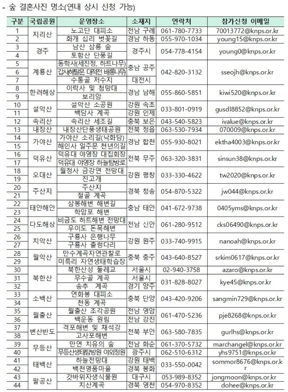 2. 국립공원 「숲 결혼식」 신청 방법 및 주요 정보