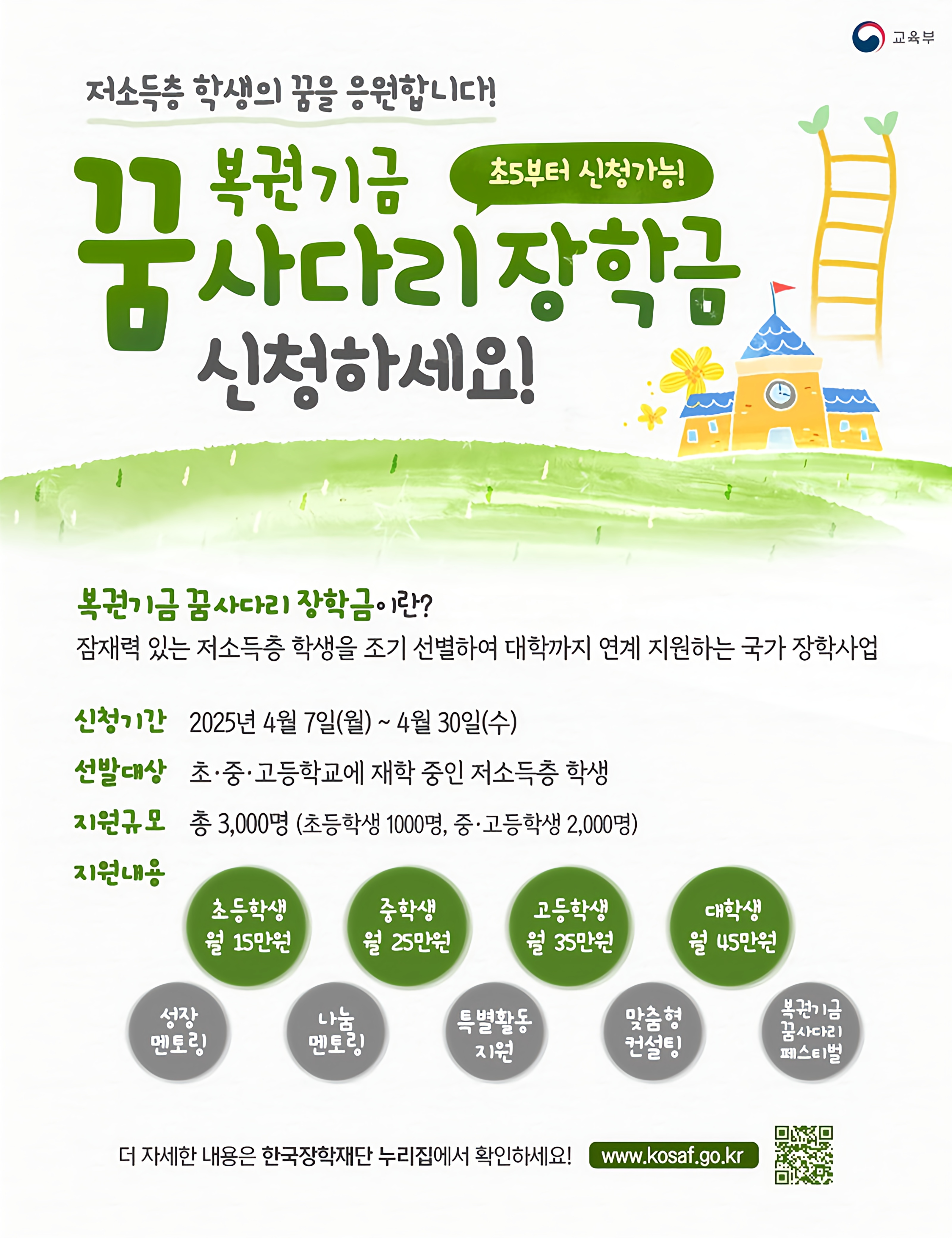 - '2025 꿈사다리 장학금' 신청서를 작성하고 제출합니다.