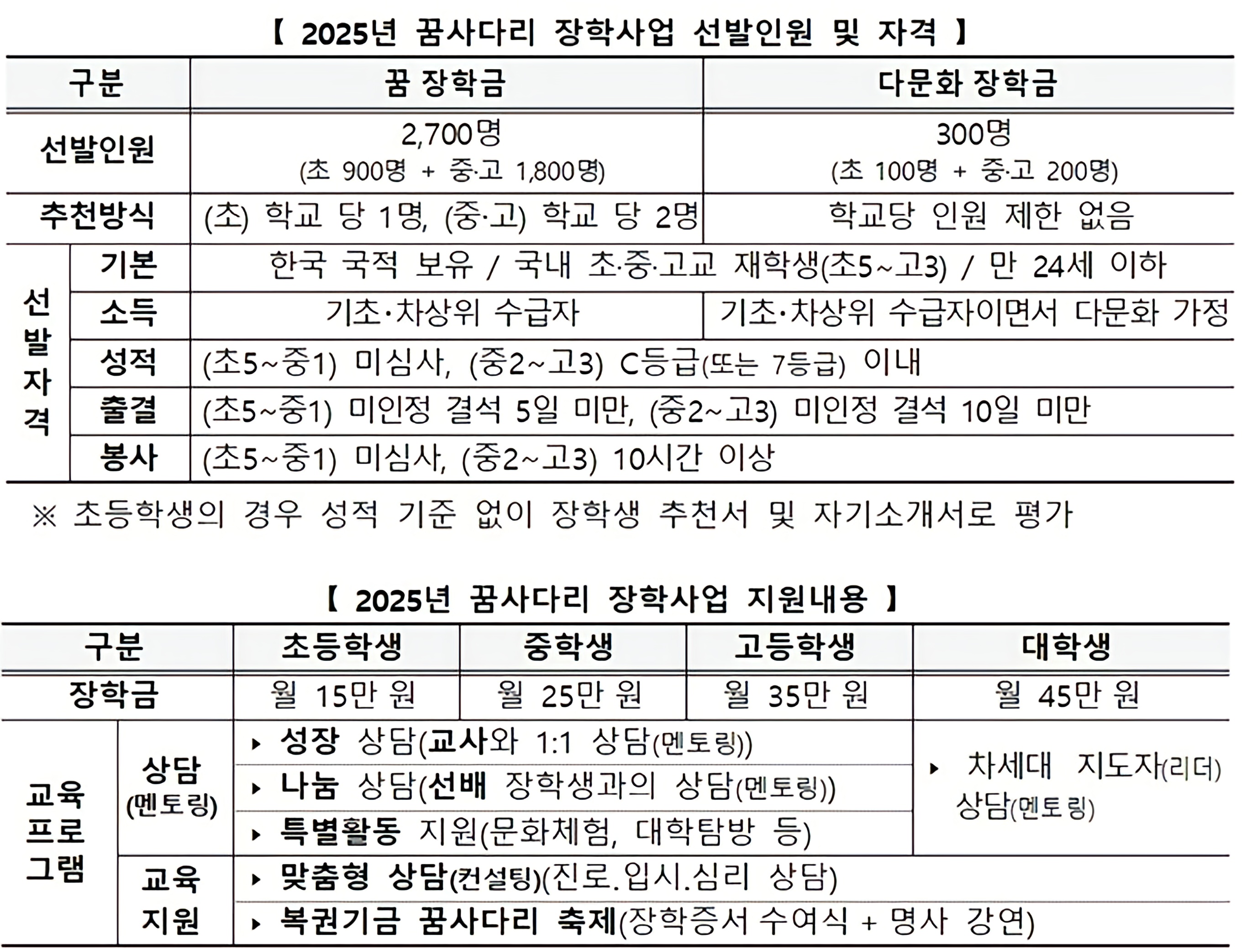 2. 꿈사다리 장학금 지원대상