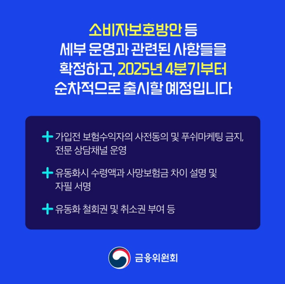 - 크라우드펀딩 연계 : 다수의 투자자가 참여하는 새로운 형태의 보험금 유동화 플랫폼이 생길 수 있습니다.
