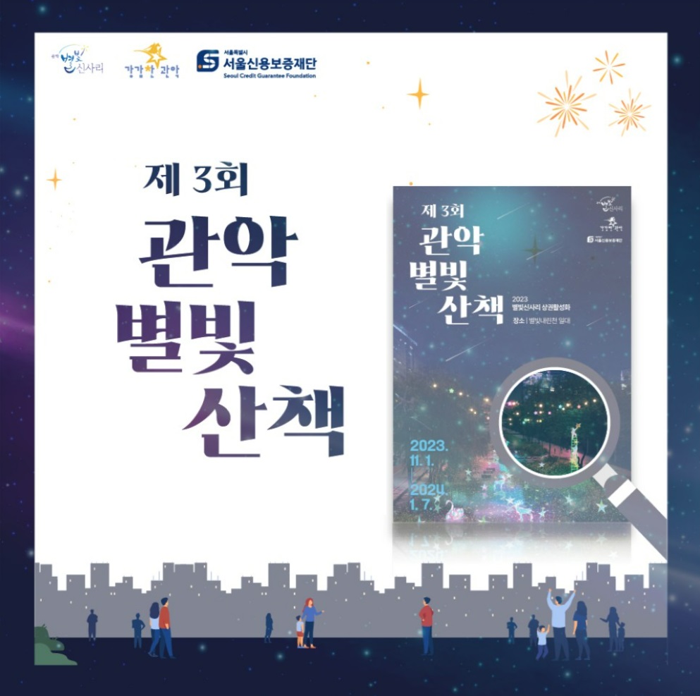 관악 신사리에 별빛이 내려오다. 올해 3회째를 맞이하는 관악 별빛 산책에서는 다채로운 빛을 내는 조명들로 더욱 화려하고 풍성하게 돌아왔다. 11월 1일부터 내년 1월 7일까지 개최되는 이번 축