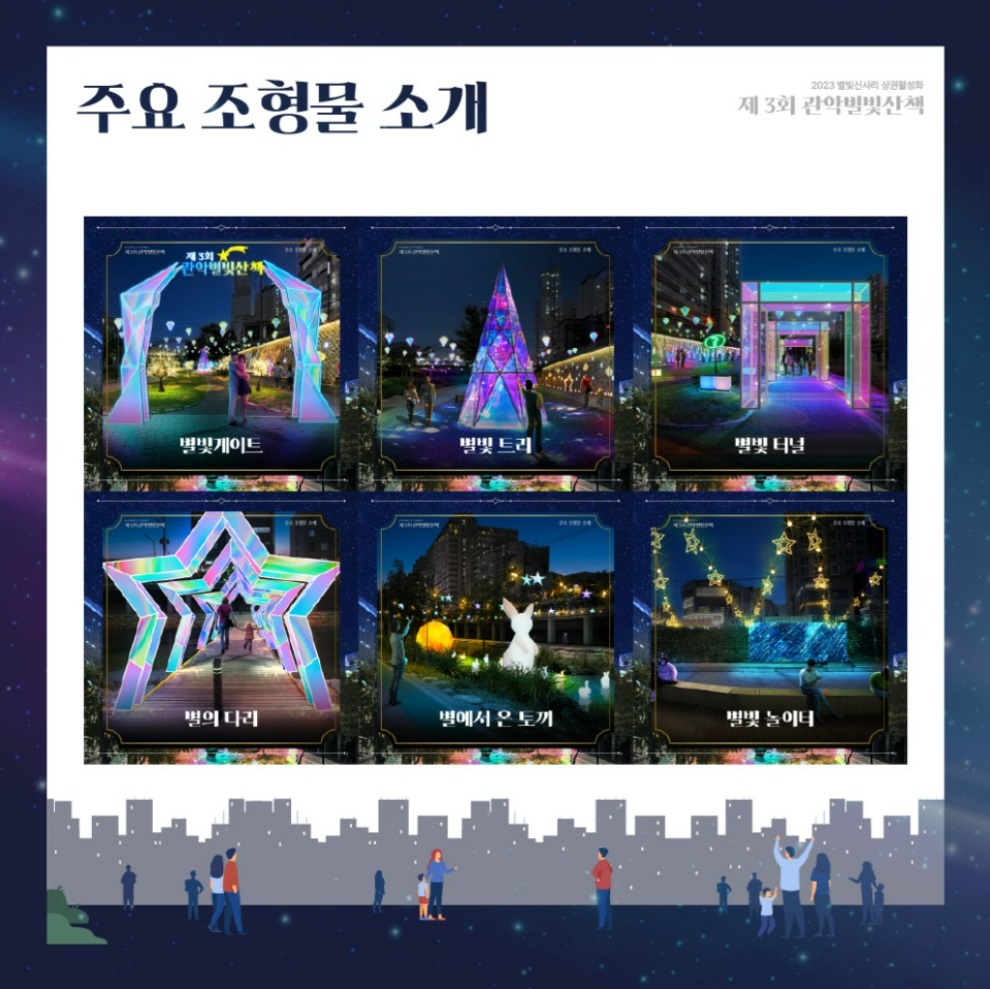 올해 세 번째를 맞이하는 관악별빛산책이 화려한 조명으로 한층 더 빛나고 풍성해졌습니다. 2023년 11월 1일부터 2024년 1월 7일까지 열리는 축제에는 오색찬란한 별빛 터널과 별모양의 트리, 그리고 사슴, 백조, 용 등의 조형물이 빛나며 모든 방문객에게 마법 같은 시간을 제공할 것입니다.