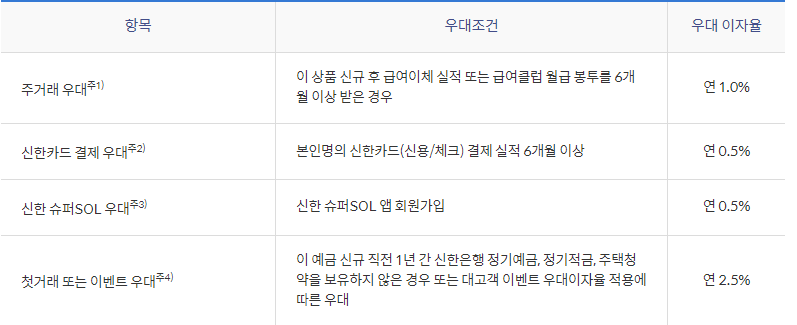 - 기본금리 연 3.5%, 우대금리 최고 연 4.5% = 연 8% 우대금리 지급