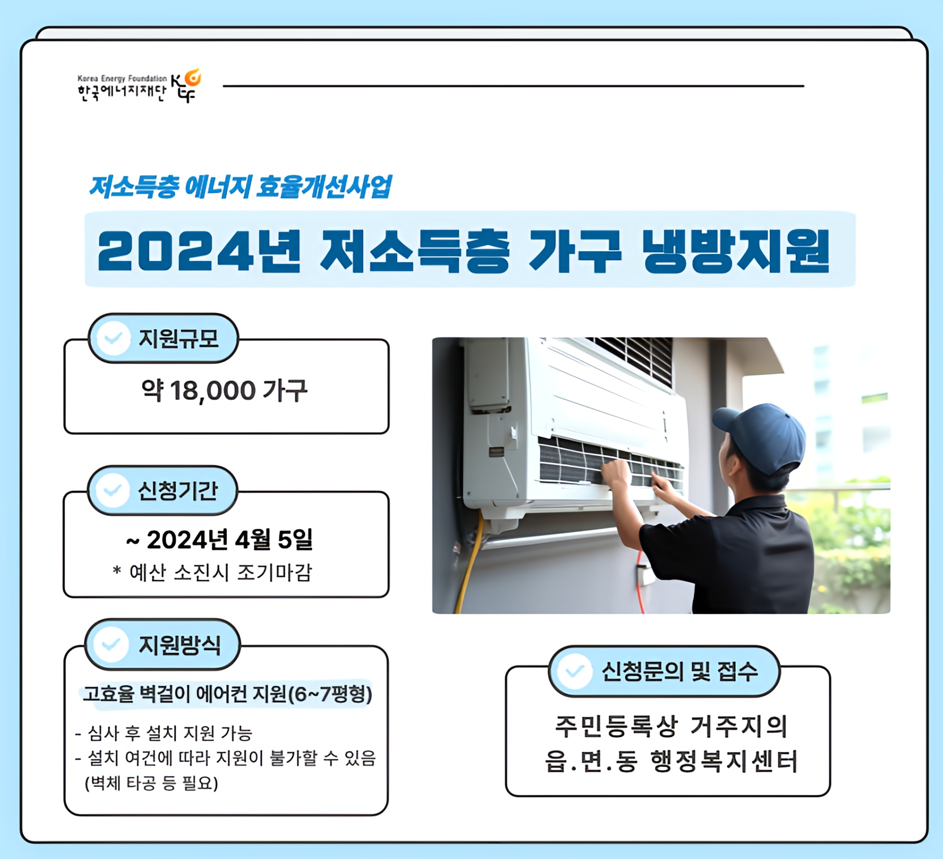 - 냉방지원사업의 경우, 2025년 3월 5일(수)부터 4월 18일(금)까지입니다.