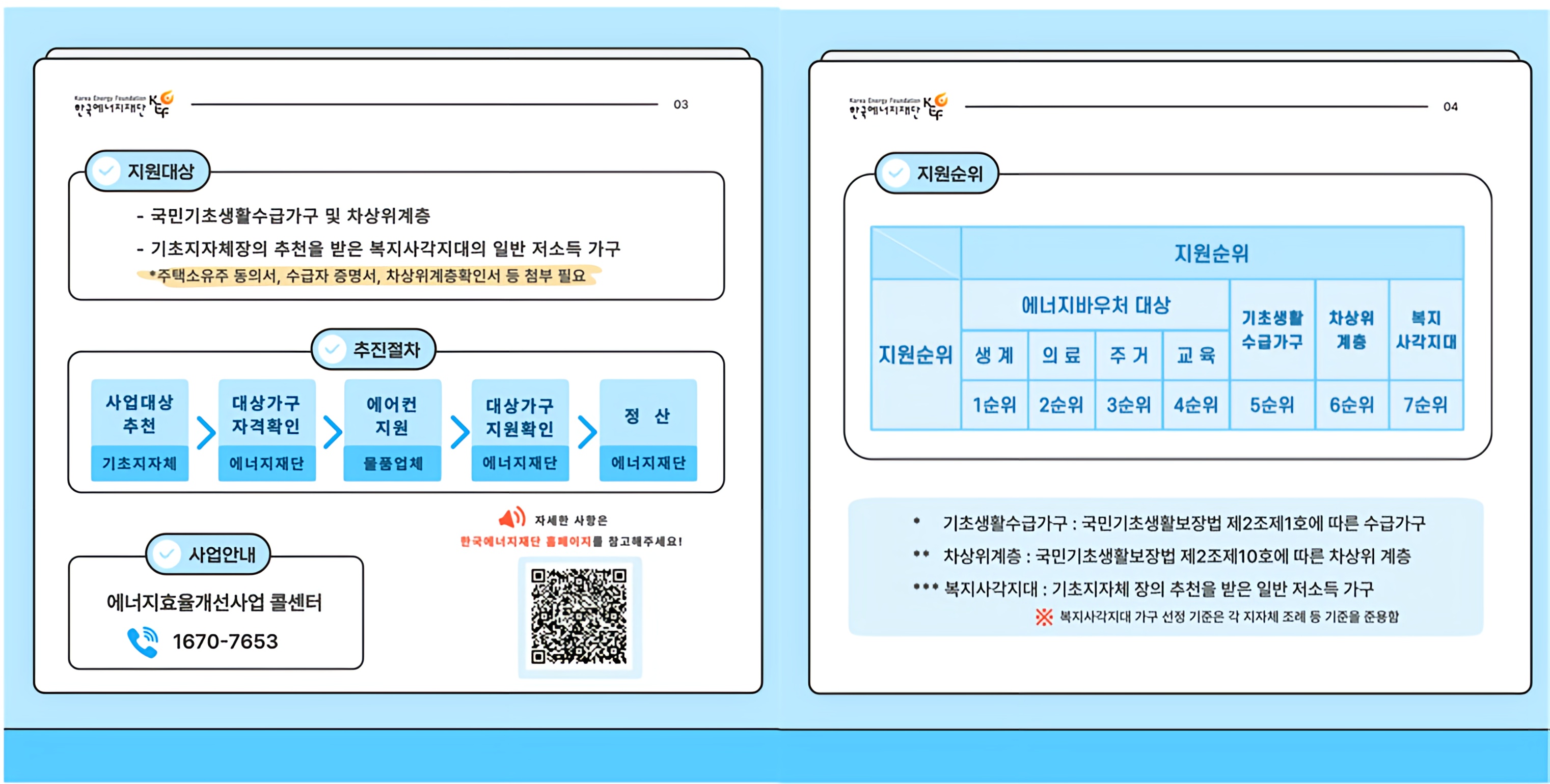 - 복지 사각지대 가구 : 지자체가 추천하는 에너지 취약계층으로, 에너지 바우처를 받지 못하는 저소득층도 포함됩니다.