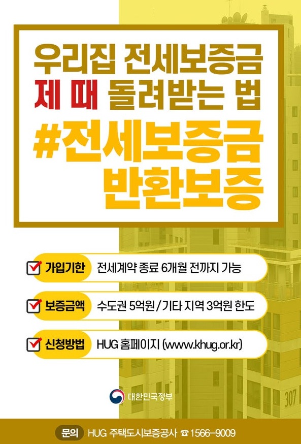 - 보증 범위 :전세 계약 종료 후 임대인이 반환해야 할 전세보증금을 보험사가 책임지고 지급합니다.