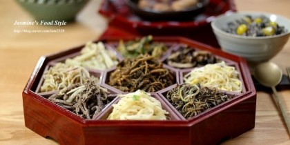 가을에 미리 말려둔 아홉가지 나물을 먹어 올한해 동안 가족의 건강과 풍요를 기원합니다.