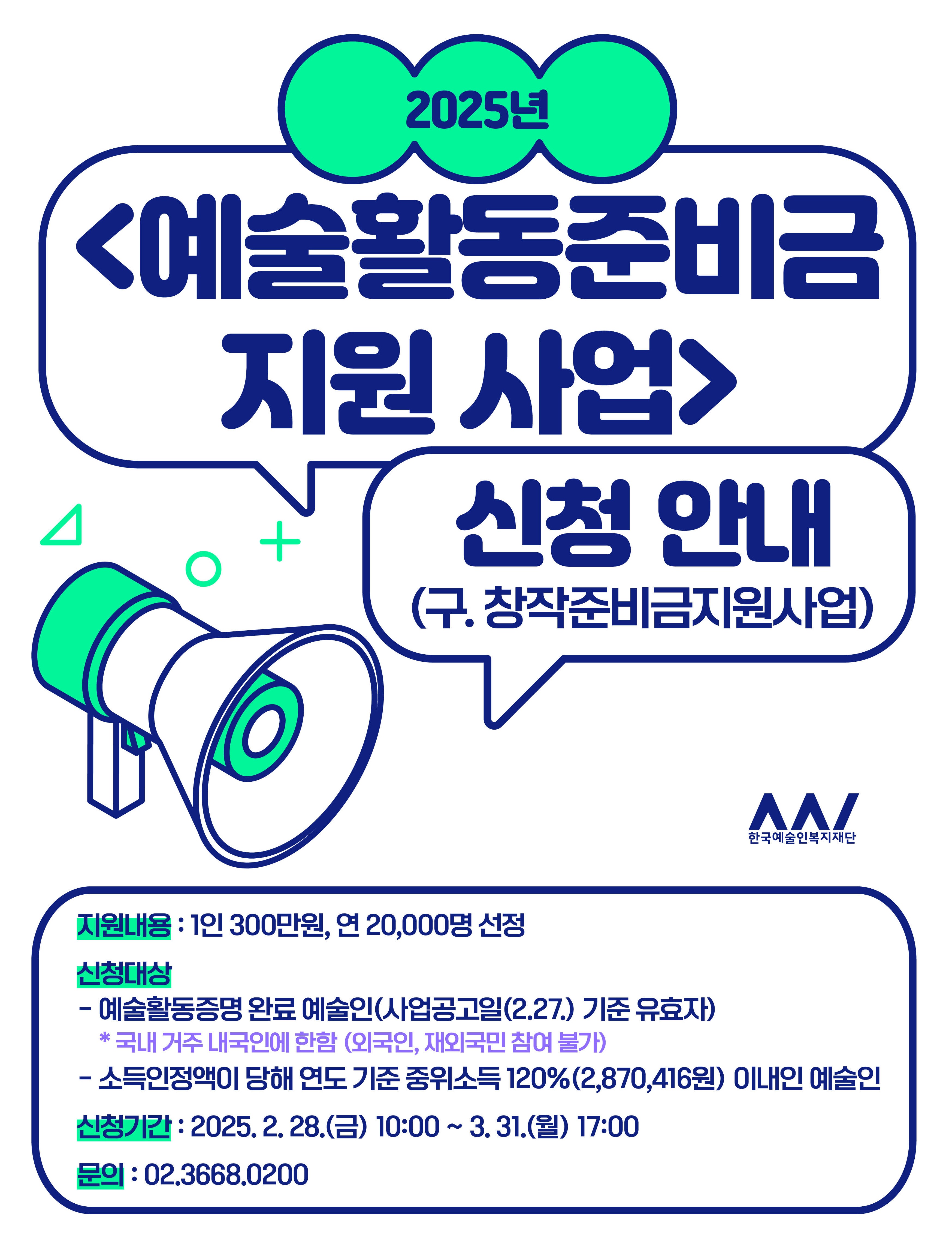 - 예술활동증명 완료 : 「예술인 복지법」에 따라 예술활동증명을 완료한 예술인이어야 합니다. 특히 주목할 점은 공고일인 2025년 2월 27일 기준으로 이 증명이 유효해야 한다는 것입니다.