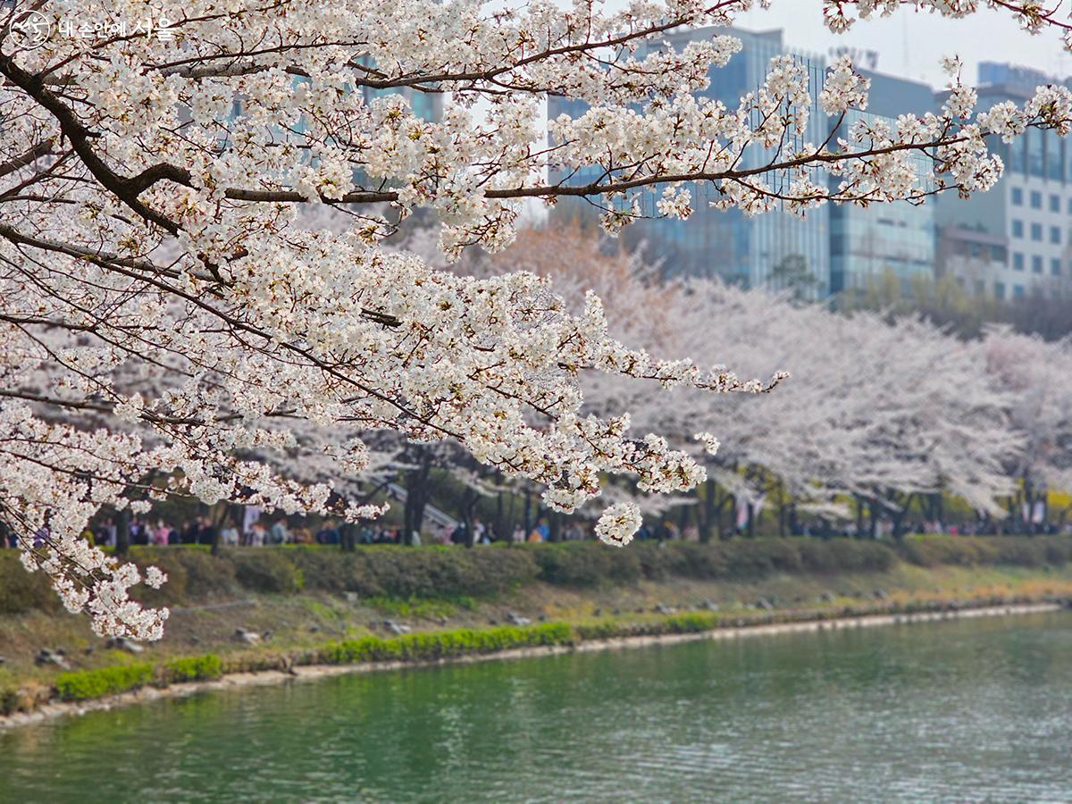 잠실 석촌호수 주변에는 약 1,000그루의 벚나무가 호수를 둘러싸고 있어, 물에 비친 벚꽃의 모습을 감상할 수 있습니다. 호수를 산책하며 벚꽃을 즐기기에 최적의 장소입니다.