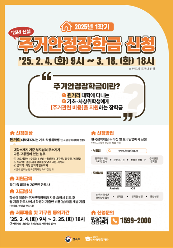 주거안정장학금, 놓치지 마세요!