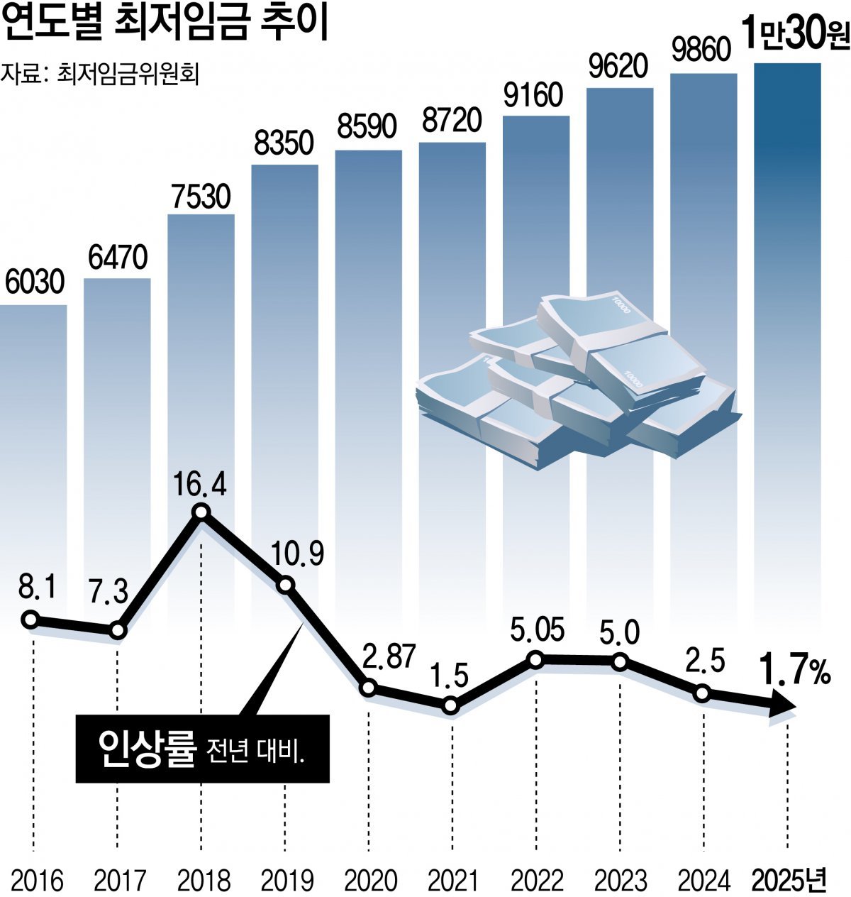 - 전년 대비 인상률 : 1.7% (170원 증가)