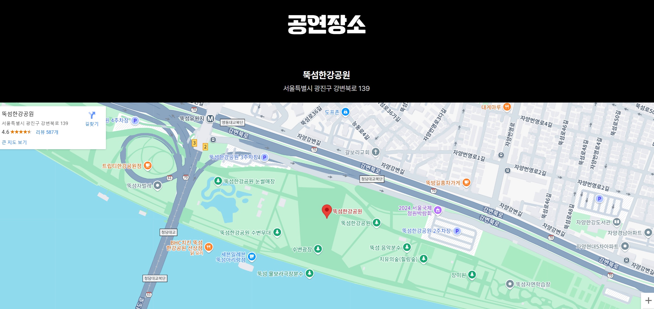 - 주차장 : 뚝섬주차장(유료, 500대 수용) ※18:00 이후 만차 주의